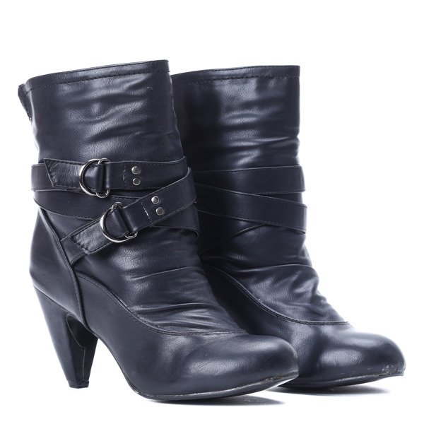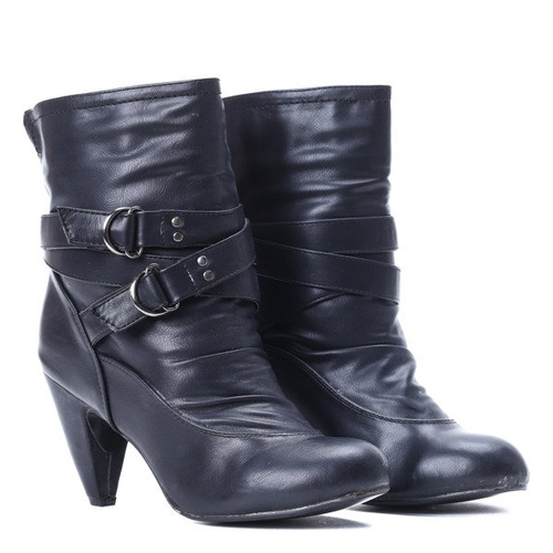 - Прекрасные ботинки на более толстом нижнем каблуке. Утепление из тонкого меха. Верх с оборками, полосками и пряжками. Идеально сочетается с плащом.