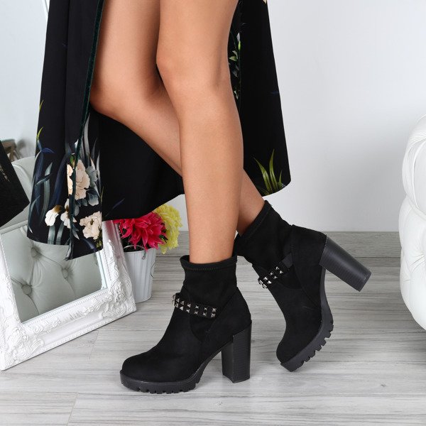 • Niepowtarzalne botki z paskiem na wysokości kostki ozdobionym ćwiekami. Model wykonany z zamszu na stabilnym słupku. Idealne do kobiecych stylizacji. Solidnie wykonane i bardzo wygodne.