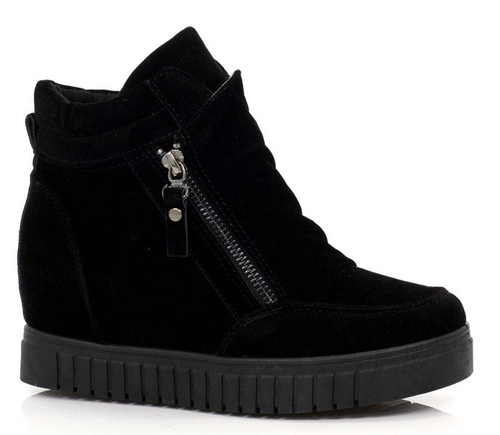 - Sportowe sneakersy z ekologicznego zamszu. Zapinane na dwa suwaki z boku. Posiadają kryty koturn w podeszwie. Idealne dopełnienie sportowej stylizacji.