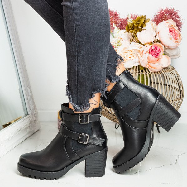 - Женские сапоги на столбе из экологической кожи. Черная модель. Сзади обувь застегивается на молнию. Эти женские туфли станут отличным аксессуаром на осень.