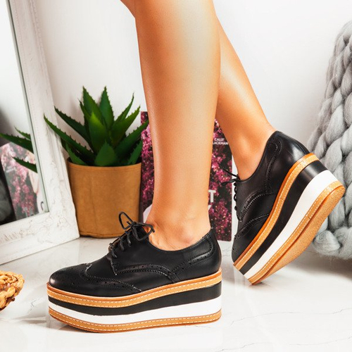 - Damskie półbuty na platformie wykonane ze skóry ekologicznej w kolorze czarnym. Cholewka wykończona ażurowymi zdobieniami. Zwężany nosek i wysoka podeszwa optycznie wyszczuplą Twoje nogi. Te oxfordy dodadzą charakteru każdej jesiennej stylizacji!