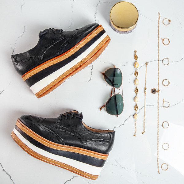 Czarne oxfordy na wysokiej platformie Waleriana - Obuwie