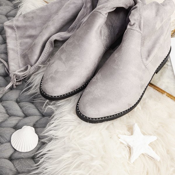 Szare kozaki z eko - zamszu Taramina - Obuwie