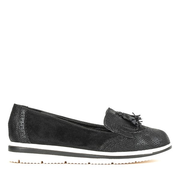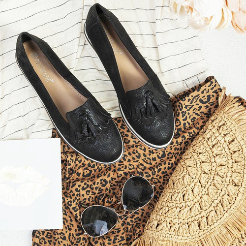 Czarne mokasyny na platformie z frędzelkami Narciso - Obuwie
