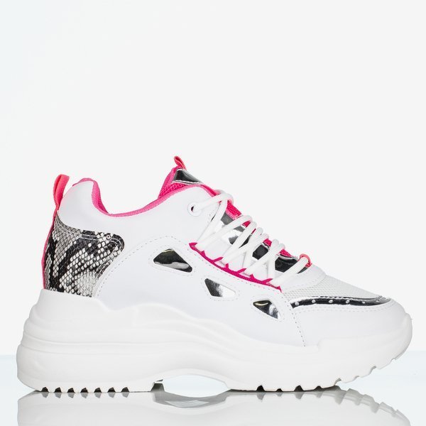 - Модная женская спортивная обувь на массивной подошве с дополнительной скрытой танкеткой. Кроссовки изготовлены из экологичной кожи в сочетании с сеткой. Модель украшена тиснением и металлическими вставками.