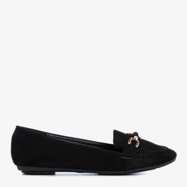 - Элегантные женские мокасины черного цвета. Модель выполнена из экологической замши. Кожаная стелька - эко. Носик украшен золотой пластиной. Идеальная обувь к пальто.
