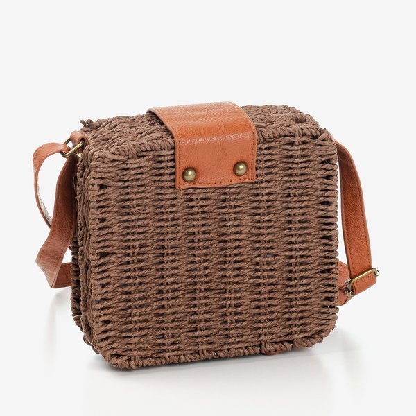 - Квадратная женская сумка-чемодан из темно-коричневых тканых бумажных соломок. Они застегиваются на пряжку. Тканевая подкладка ПРИМЕЧАНИЕ: В некоторых моделях застежка может быть выше, чем на фото.