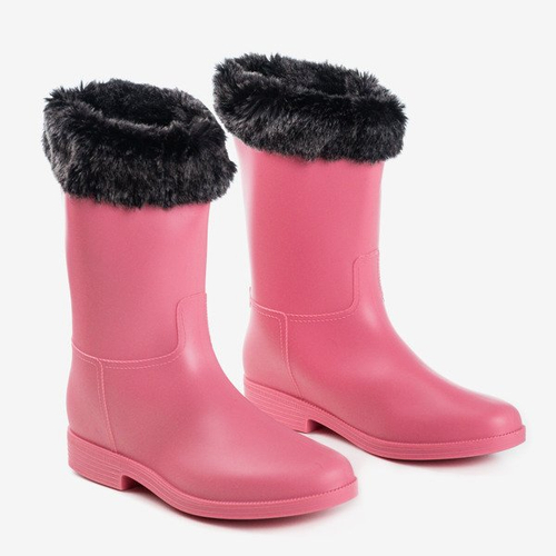 Розовые матовые резиновые сапоги с мехом Гуми - Обувь