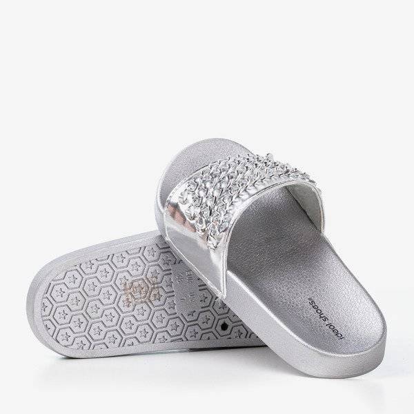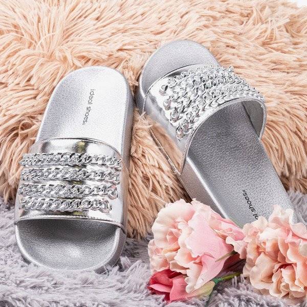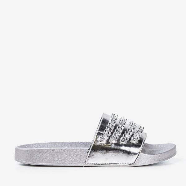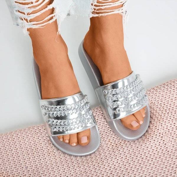 OUTLET Серебряные тапочки на цепочке Slivien - Обувь