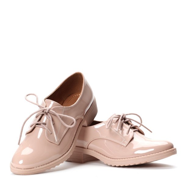 - Stylowe obuwie na wyższej podeszwie stylizowane na ponadczasowe oksfordki, wykonane ze skóry ekologicznej- lakierowanej. Wysoki, wzmacniany nosek gwarantuje wygodę podczas długiego noszenia. Wkładka z ekologicznej skóry.