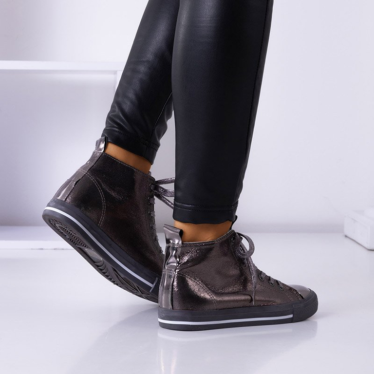 OUTLET Высокие мерцающие женские кроссовки графитового цвета Interiaq - Обувь