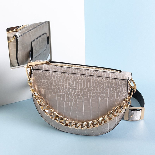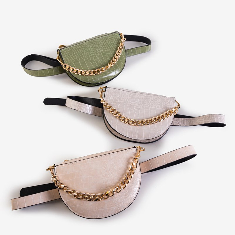 - Стильная поясная сумка с экологической кожи, украшенная тиснением под кожу рептилии. Имеет регулируемый ремешок на пряжке.