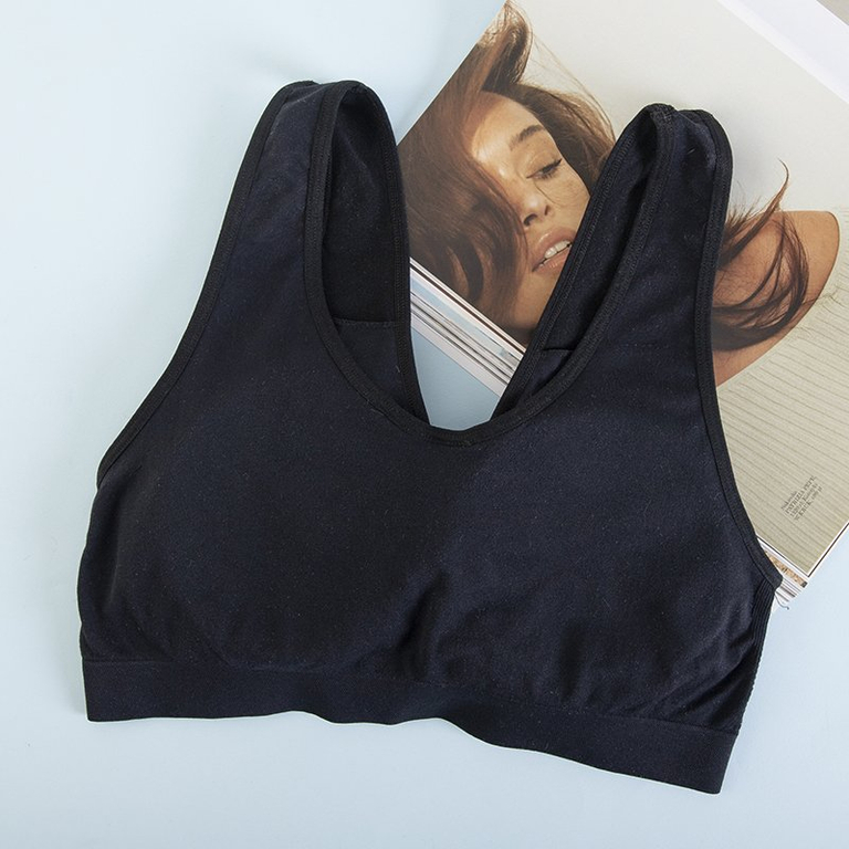 - Спортивный бюстгальтер изготовлен из эластичной ткани. Модель с широкими бретелями и съемными вставками. Внизу эластичная резинка, которая обеспечит комфорт в течение дня.