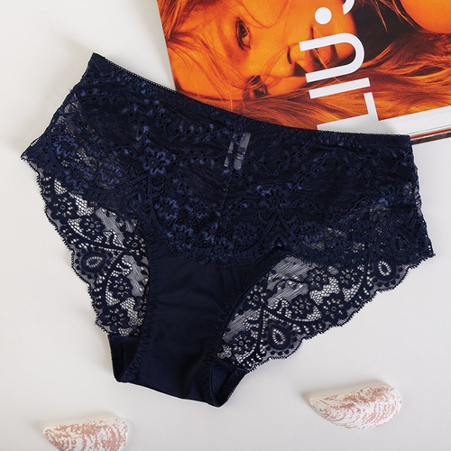 Темно-синие женские трусы с кружевом PLUS SIZE