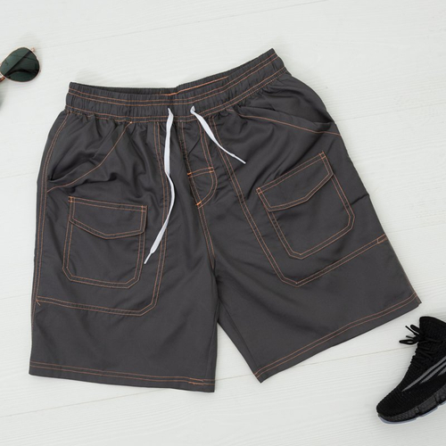 • Мужские короткие шорты из эластичного материала - идеальный выбор на лето! Модель имеет 6 карманов, эластичную резинку в поясе на завязках и сетку внутри.