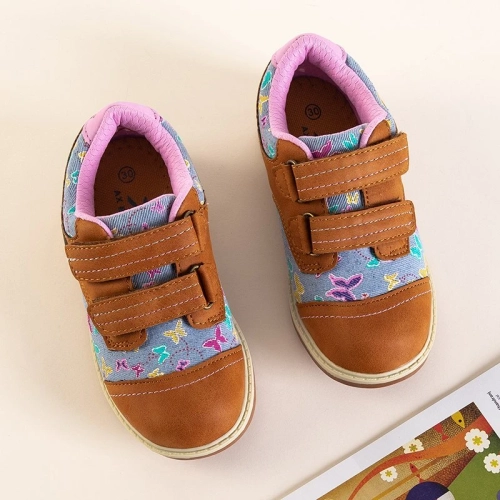 • Стильные детские кроссовки. Выполнены из сочетания ткани типа деним и экологической кожи. Застегивается на липучки. Внутри тканевая стелька. Идеальное повседневная обувь!
