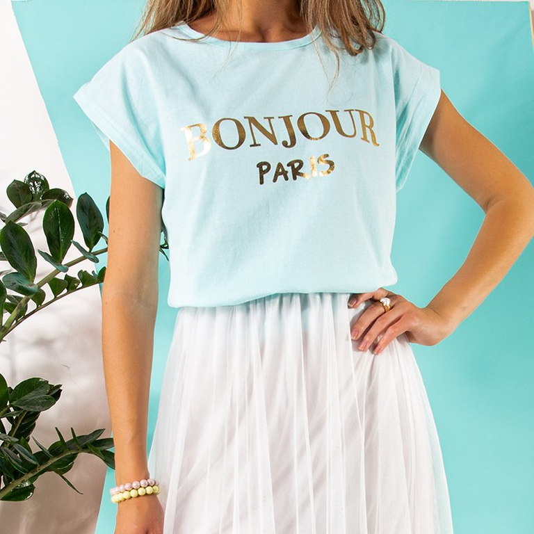 - Женская хлопковая футболка с короткими рукавами и круглым вырезом. Спереди модель украшена золотистой надписью. Удобная футболка на каждый день!