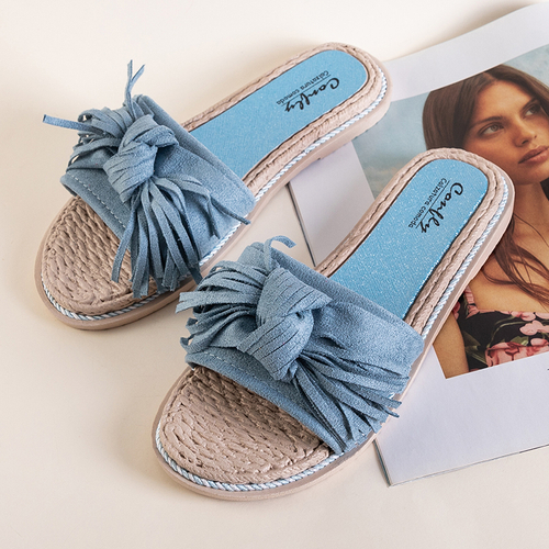 - Фантастические женские шлепанцы с бахромой. Изготовленные из экологической замши. Подошва и стелька - резиновые, кроме того, стелька с мерцающим финишем, а по краям подошвы - двухцветные украшения. Идеальные шлепанцы на лето!