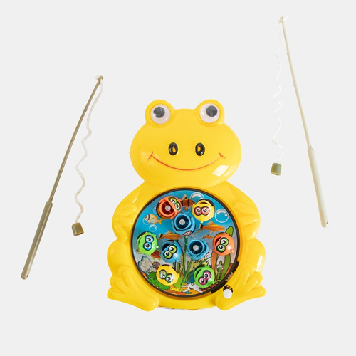- Детская игрушка для рыбалки. Изготовлена из пластика. Набор включает: 8 разноцветных рыбок и 2 удочки с магнитами. После начала игры колесо в центре начинает крутиться, и рыбки открывают свои ротики с магнитами.
