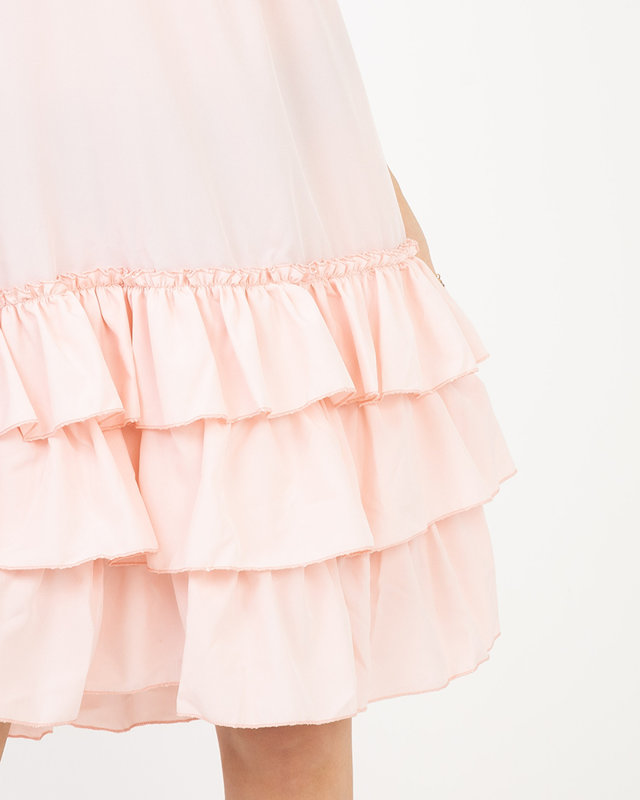 Темно-розовое женское платье с оборками