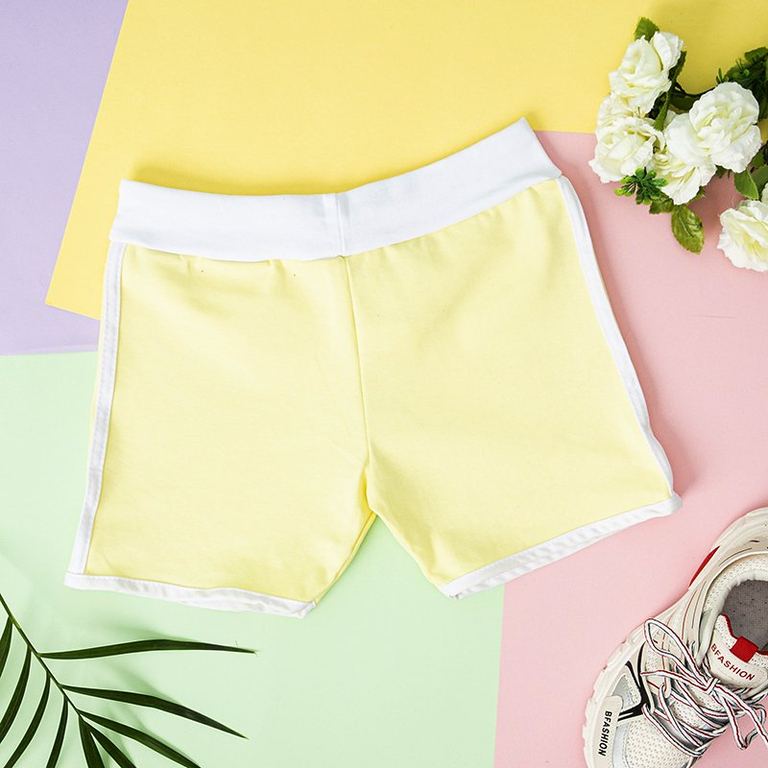 • Очень удобные шорты для девушек. Выполнены из мягкой хлопковой ткани. В поясе эластичная резинка на завязках. Модель оснащена контрастными лампасами по бокам.