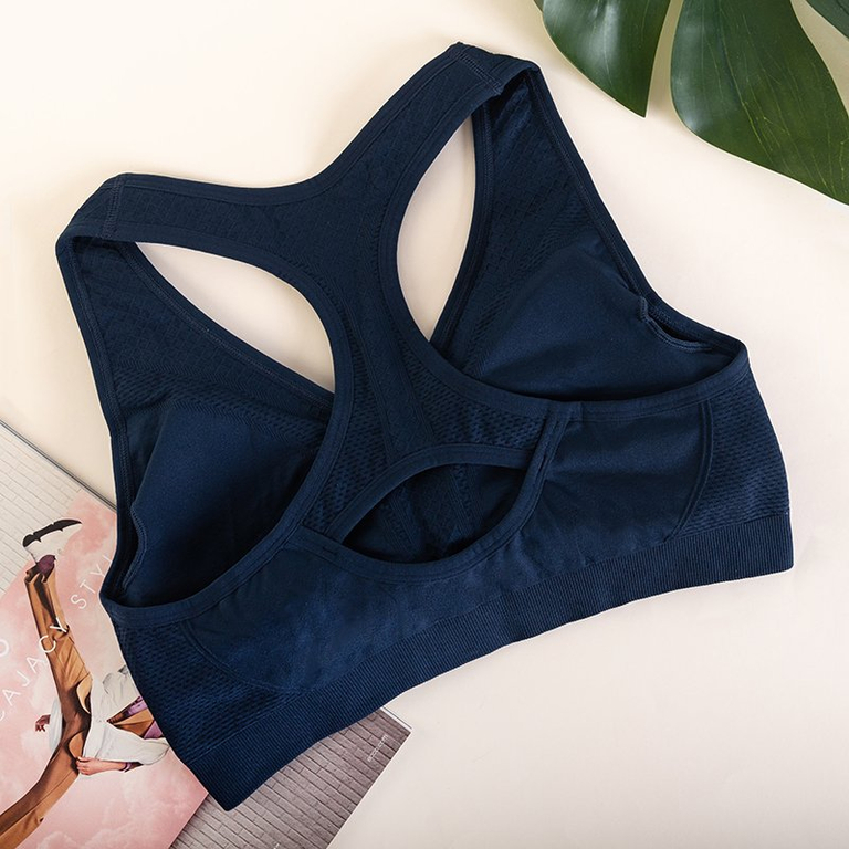 - Женский спортивный бюстгальтер из эластичной ткани. Модель на широких бретелях и со съемными вкладышами. Бюстгальтер завершен эластичной лентой внизу, благодаря которой он идеально приспосабливается к телу.