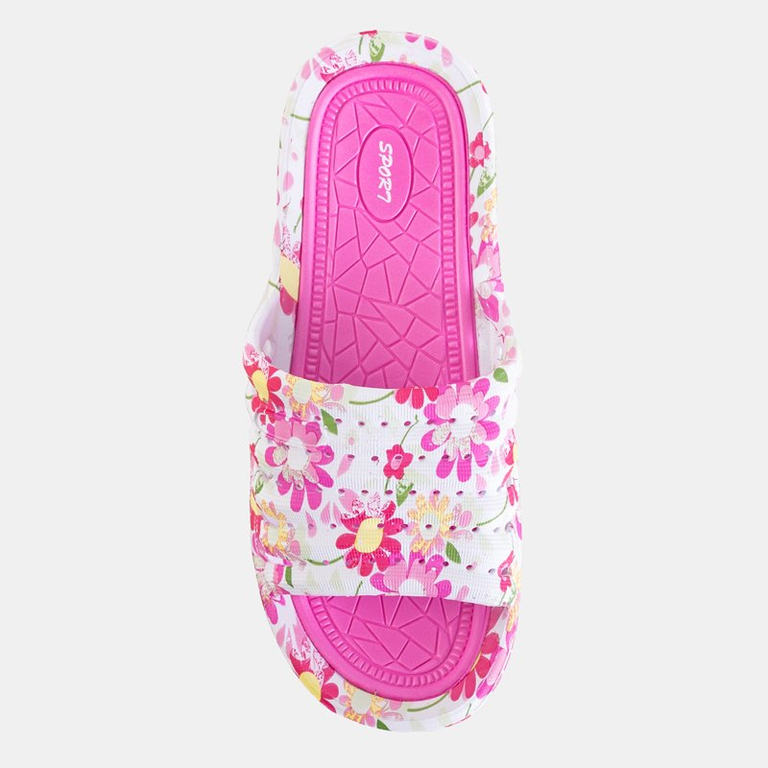 - Очень удобные женские шлепанцы. Изготовленные из резинового материала и украшены цветочным мотивом. Стелька из пенопласта. Идеально подходят для сада или бассейна.