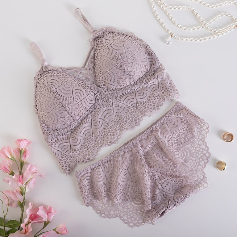 Светло-фиолетовый женский кружевной комплект нижнего белья
