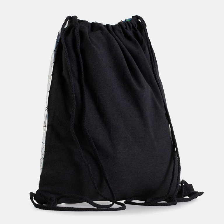 - Рюкзак в необычном, оригинальном стиле. Изготовлен из сочетания ткани и пластика. Материал с геометрическим рисунком, имеет голографическую обработку.