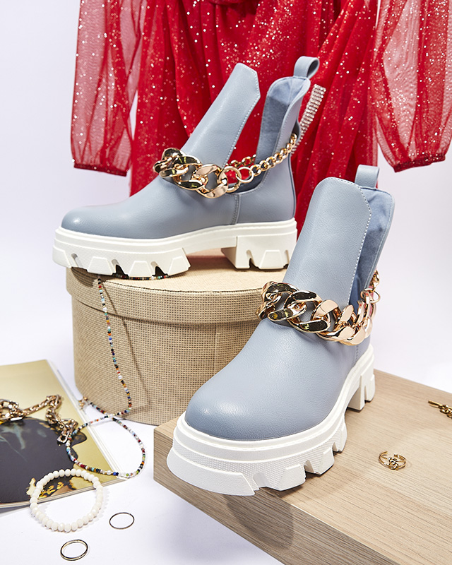 Синие женские сапоги с цепочкой Tenkay - Обувь