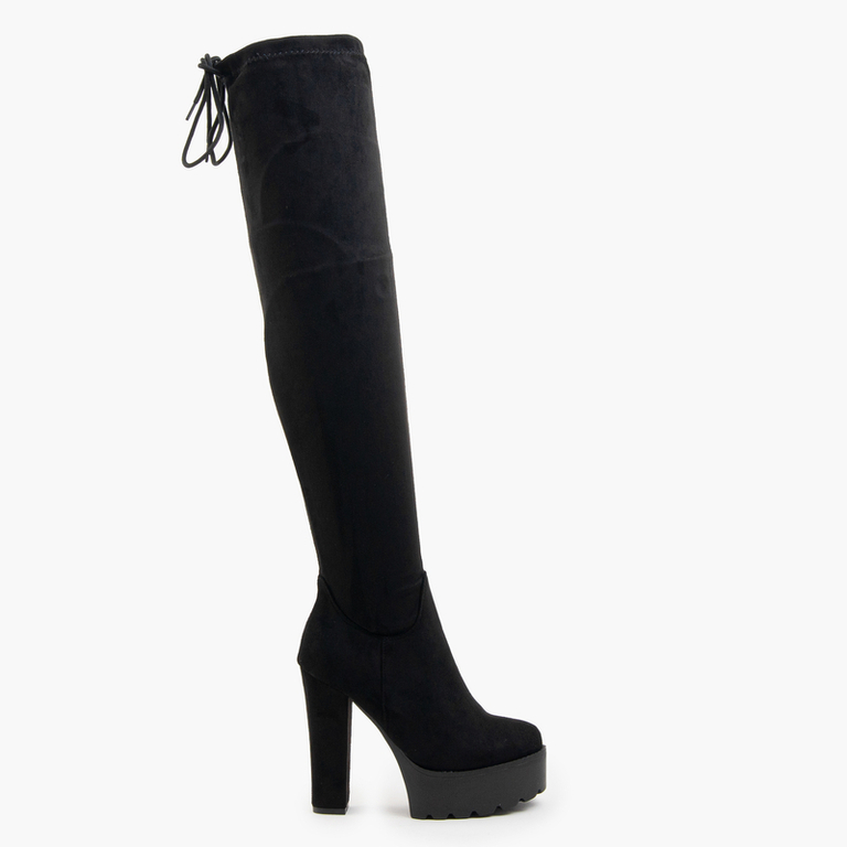 Черные женские ботфорты на высоких каблуках Numi