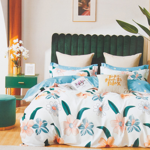 Белое хлопковое постельное белье с цветами 160х200, комплект из 3-х частей