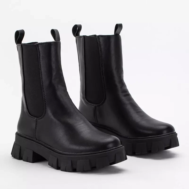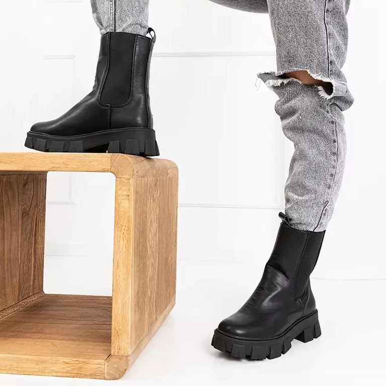- Черные женские ботинки челси на грубой подошве. Модель изготовлена из эко-кожи, внутри тканевая стелька. Обувь легко утепленная, по бокам имеет эластичные вставки. С ними модный образ обеспечено!