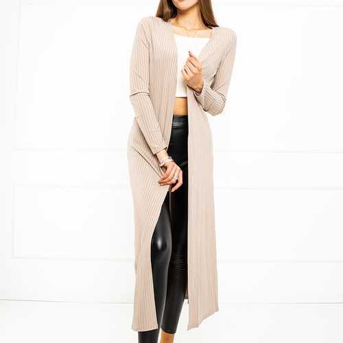 Бежевый женский удлиненный кардиган
