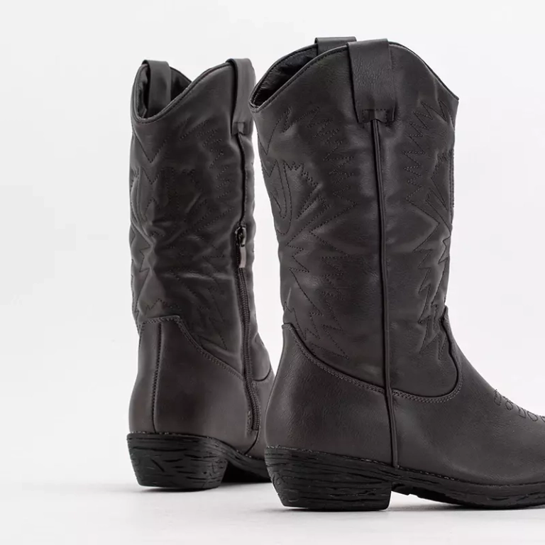 OUTLET Женские ковбойские сапоги из экокожи темно-серые Ветика - Обувь