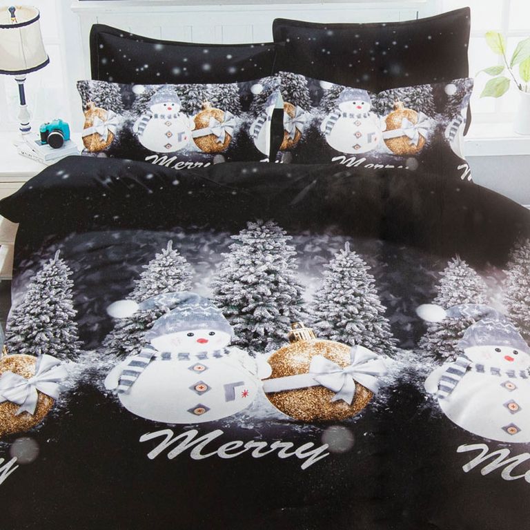 Постельное белье с новогодним принтом 160х200, комплект из 3-х частей