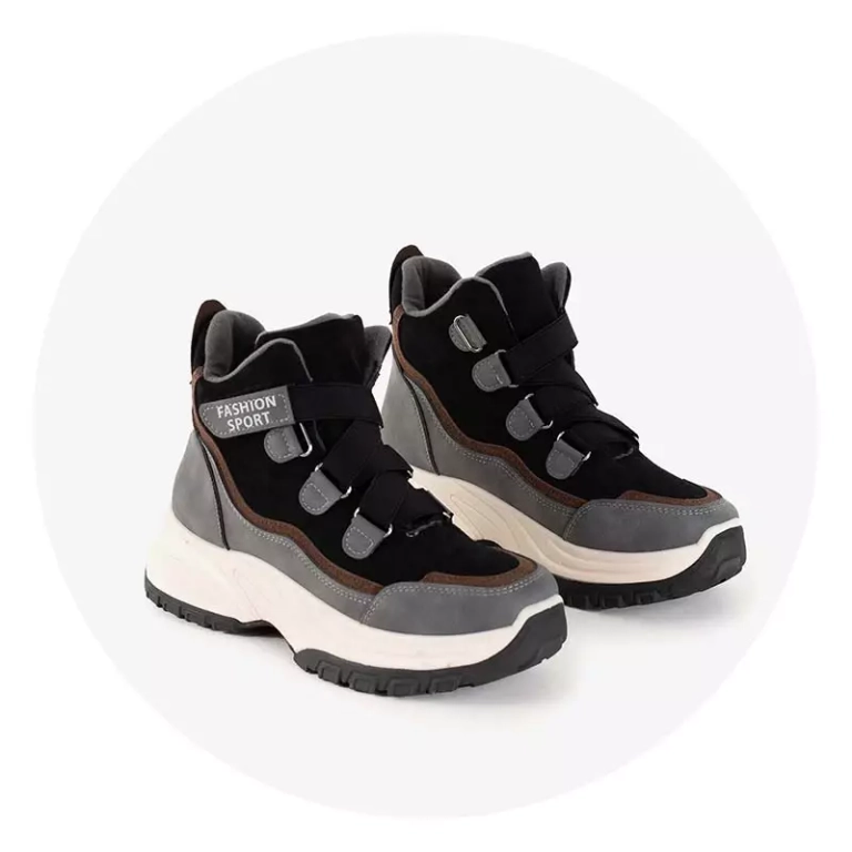 • Сенсационная женская спортивная обувь на массивной подошве. Верх выполнен из сочетания матовой экокожи и мягкой эко-замши. Внутренняя часть на меху. Застежка-липучка. Примечание: продукт изменил цвет на материале.
