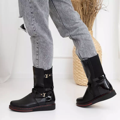 OUTLET Черные женские сапоги с лакированными вставками Rojosco - Обувь