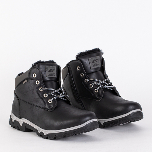 - Удобные мужские ботинки в трекинговом стиле. Изготовлены из экологичной кожи. Модель на шнуровке, застегивается на молнию, внутри утеплена мехом.
