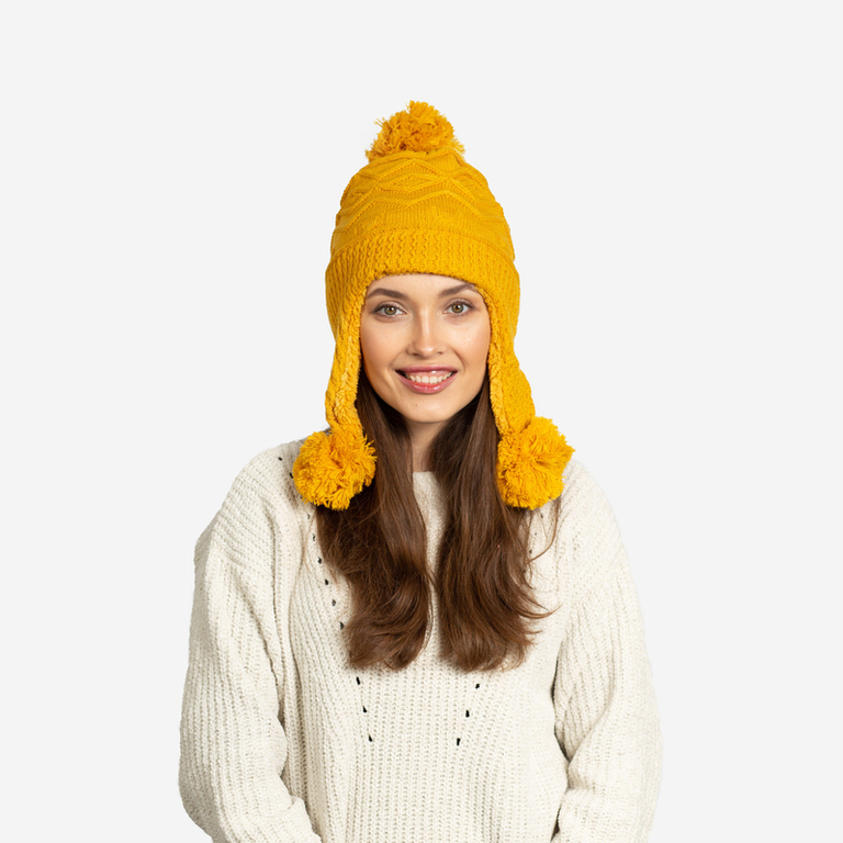 - Уютная женская утепленная шапка. Модель с мягкой меховой подкладкой, украшена пушистыми помпонами. Идеально подходит для прохладных, зимних дней!