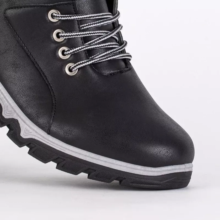 - Комфортные мужские трекинговые ботинки на плоской резиновой подошве. Верх выполнен из экологической кожи, модель шнурована и застегивается на молнию, посередине утеплитель в виде меха. Примечание: в изделии есть сломанный материал.