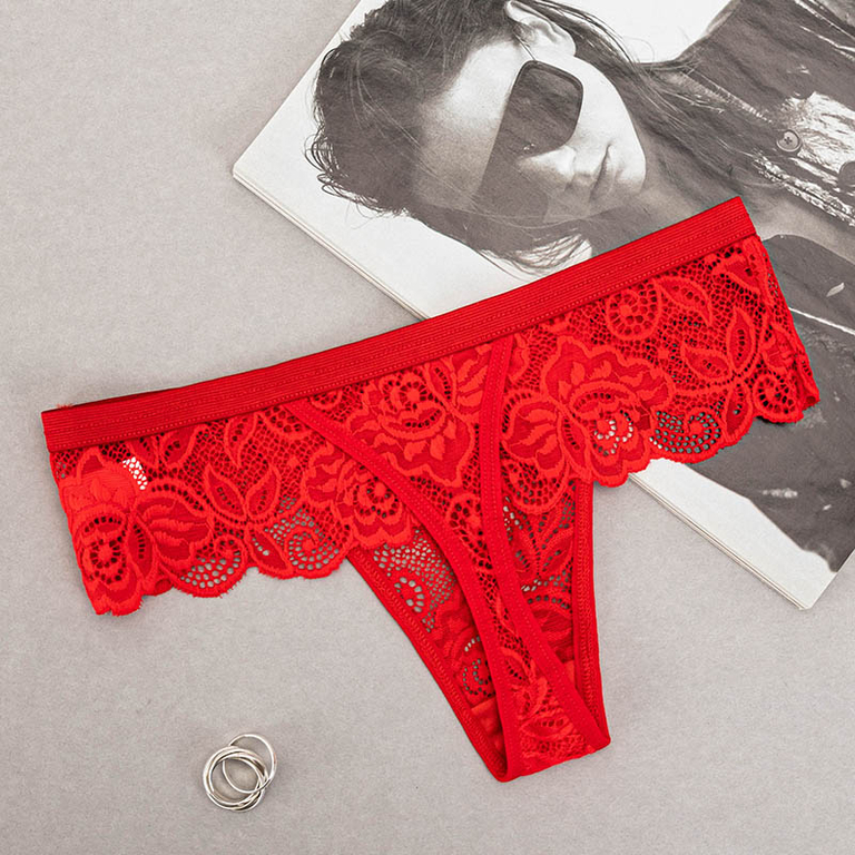 Красные женские кружевные стринги