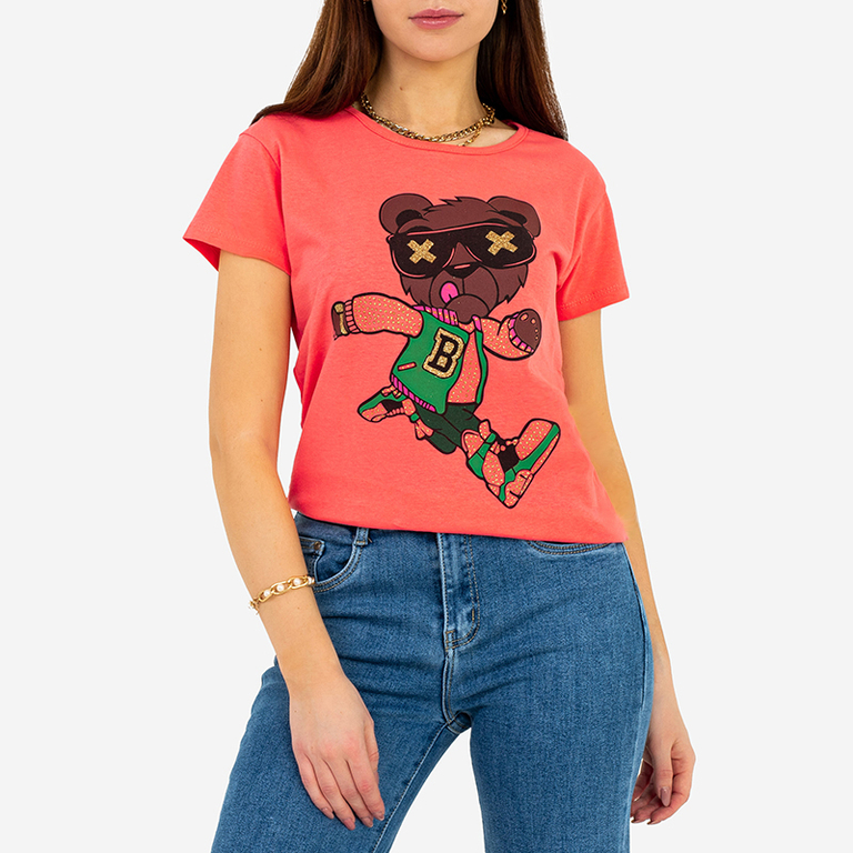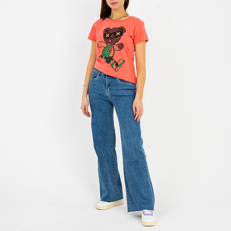 - Женская футболка с короткими рукавами и круглым вырезом. Впереди модель украшена оригинальным принтом. Идеально подходит для лета!