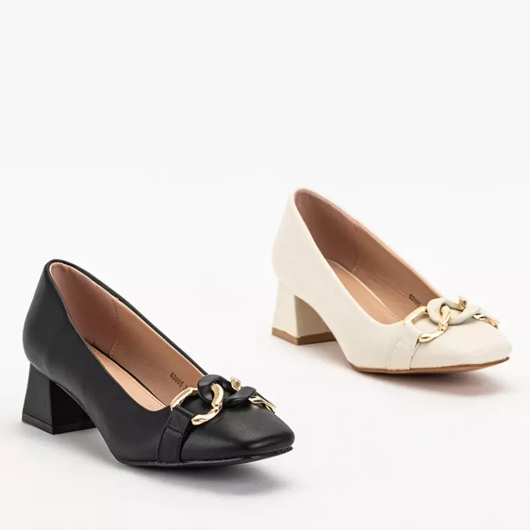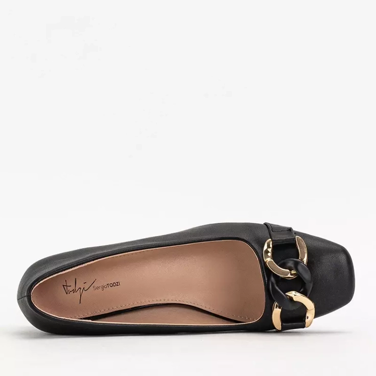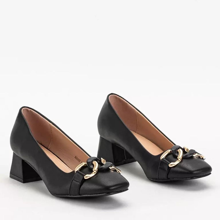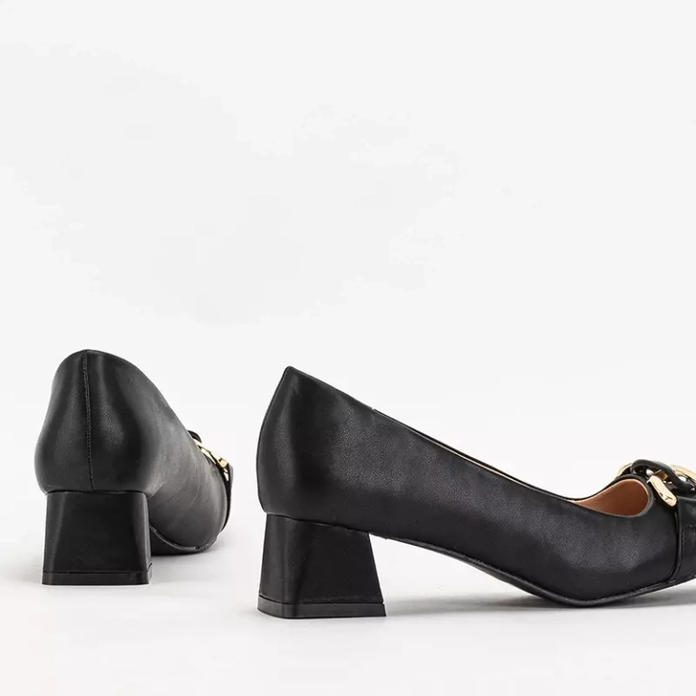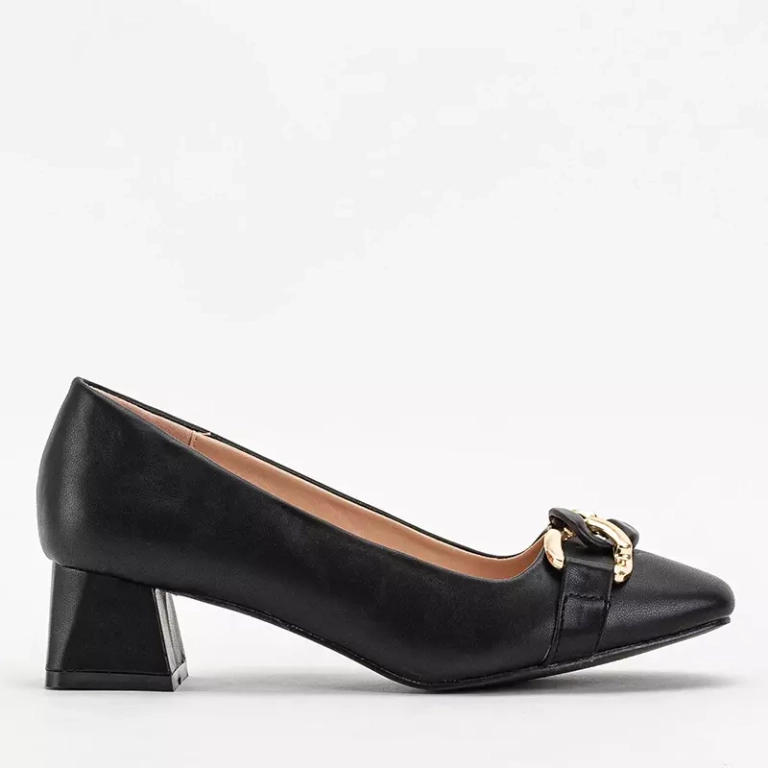 OUTLET Черные женские туфли-лодочки на низкой стойке с декором Vetina - Обувь