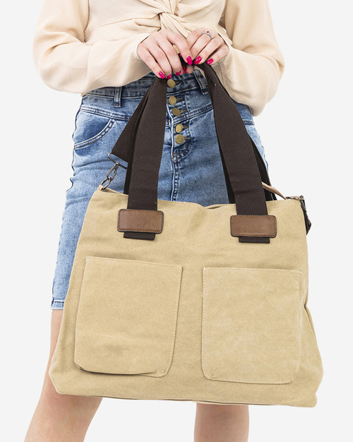 - Женская сумка через плечо с двумя наружными карманами спереди. Изготовлена из хлопчатобумажной ткани и застегивается на молнию. Модель имеет: - 1 отделение - 2 накладных кармана, - 4 кармана на молнии, — дополнительно регулируемый ремень.