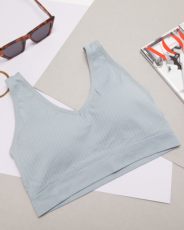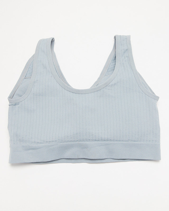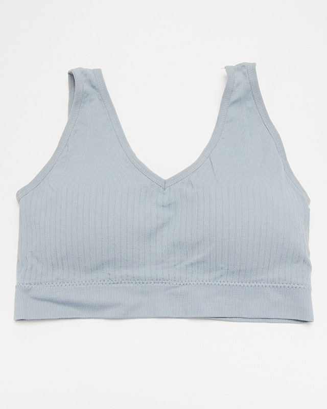 • Женский бюстгальтер из эластичного приятного материала в рубчик. Модель имеет съемные чашки, без застежек.