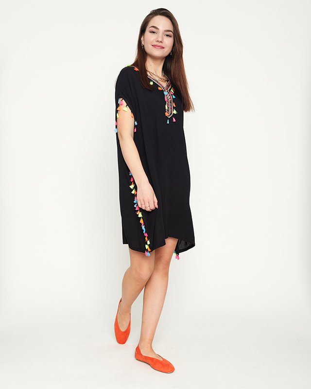 Женская летняя пляжная туника черного цвета с бахромой - Одежда