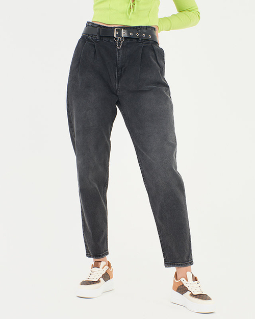 • Стильные женские джинсы в стиле mom jeans. Изготовлены из хлопкового материала. Модель имеет: