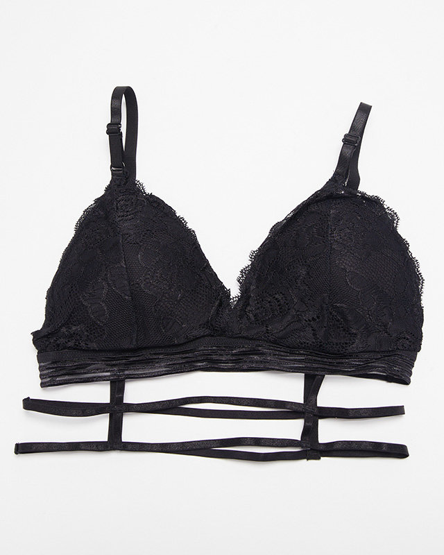 - Эффектный бюстгальтер, украшенный мягким кружевом и тонкими декоративными ремешками. Модель без застежек, имеет регулируемые бретели.