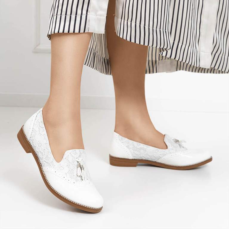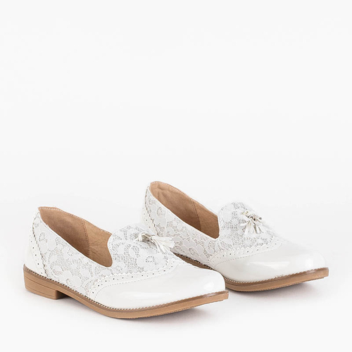 OUTLET Женские белые мокасины с кружевом и блестками Kazeti - Обувь